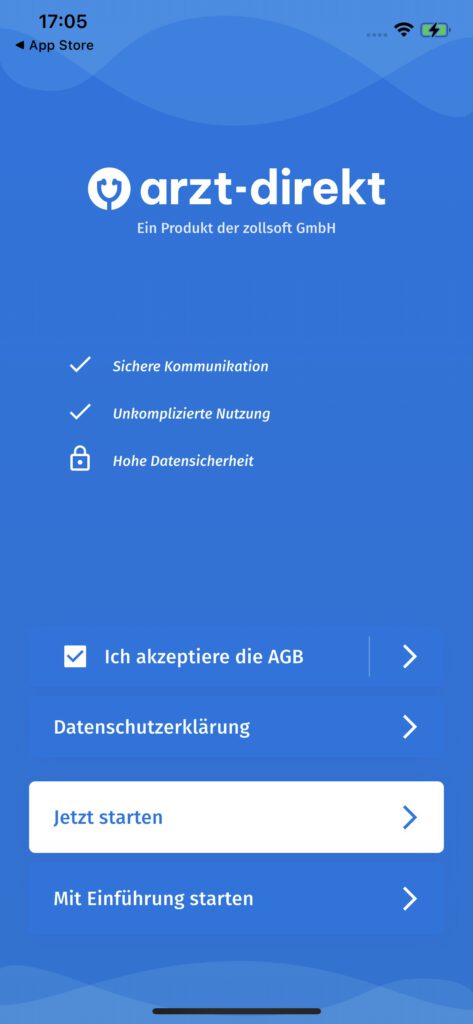 2. Starten Sie die arzt-direkt App und bestätigen Sie die AGB.